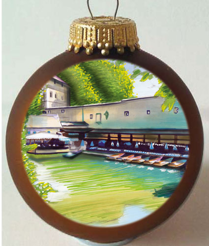 Bild auf Kugel: Augsburg/ Deutschland- „Augsburger Kahnfahrt“- Ein sehr beliebtes Ausflugsziel. Man kann sich ein Boot mieten und danach im schönen Biergarten verweilen.