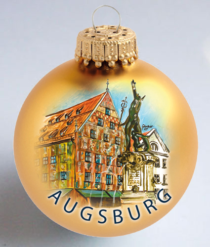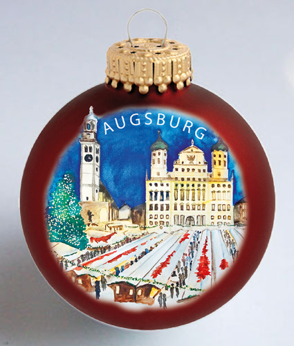 Die Augsburger Weihnachtskugeln können in den noch vorrätigen Motiven und Farben für € 13,90 pro Stück bestellt werden.